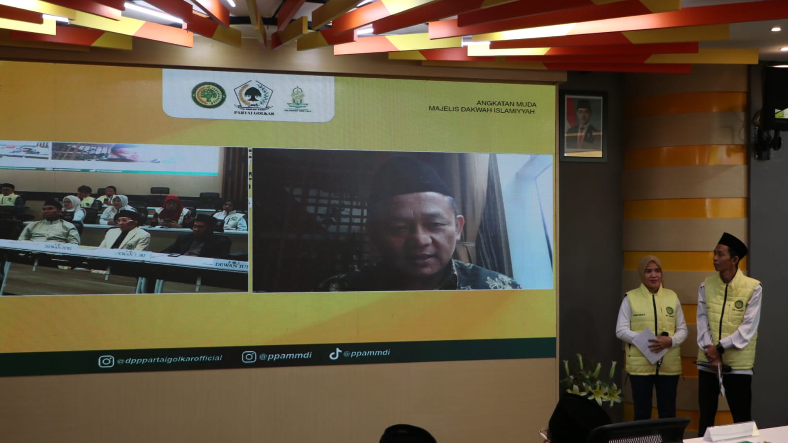 Sekretaris Jenderal DPP Partai Golkar, Muhammad Sarmuji membuka acara grand final lomba adzan tingkat nasional yang diselenggarakan oleh Pimpinan Pusat Angkatan Muda Majelis Dakwah Islamiyah (PP AMMDI) bersama Dewan Kemakmuran Masjid (DKM) Masjid Syajaratun Thoyyibah DPP Partai Golkar.
