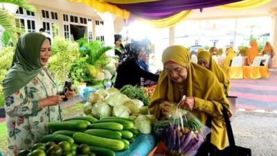 WAKIL Gubernur (Wagub) Gorontalo Idah Syahidah Rusli Habibie membagikan cenderamata pangan petani lokal pada hari…