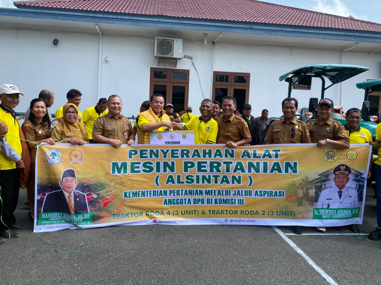 Anggota DPR RI Komisi III, Mangihut Sinaga, menegaskan komitmennya dalam mendukung penguatan sektor pertanian di Kabupaten Dairi melalui penyerahan bantuan alat dan mesin pertanian (alsintan) dari Kementerian Pertanian RI Tahun 2026. Penyerahan bantuan tersebut berlangsung dalam kegiatan reses dan sosialisasi yang digelar di Pendopo Rumah Dinas Bupati Dairi, Senin (28/4/2026).
