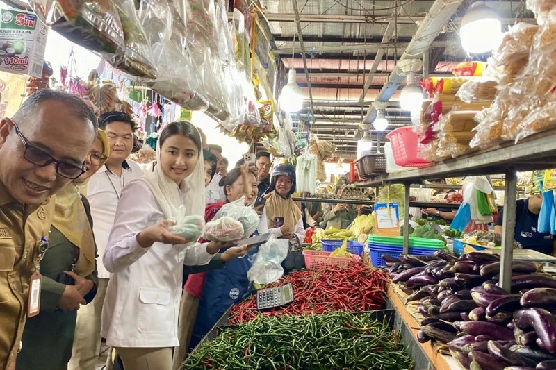 WAKIL Menteri Perdagangan (Wamendag) Dyah Roro Esti Widya Putri memantau harga bahan pokok di Pasar Tradisional Summerland, Kota Batam, Kepulauan Riau, sebagai bagian dari upaya pemerintah menjaga stabilitas harga menjelang Idul Fitri 1477 H.